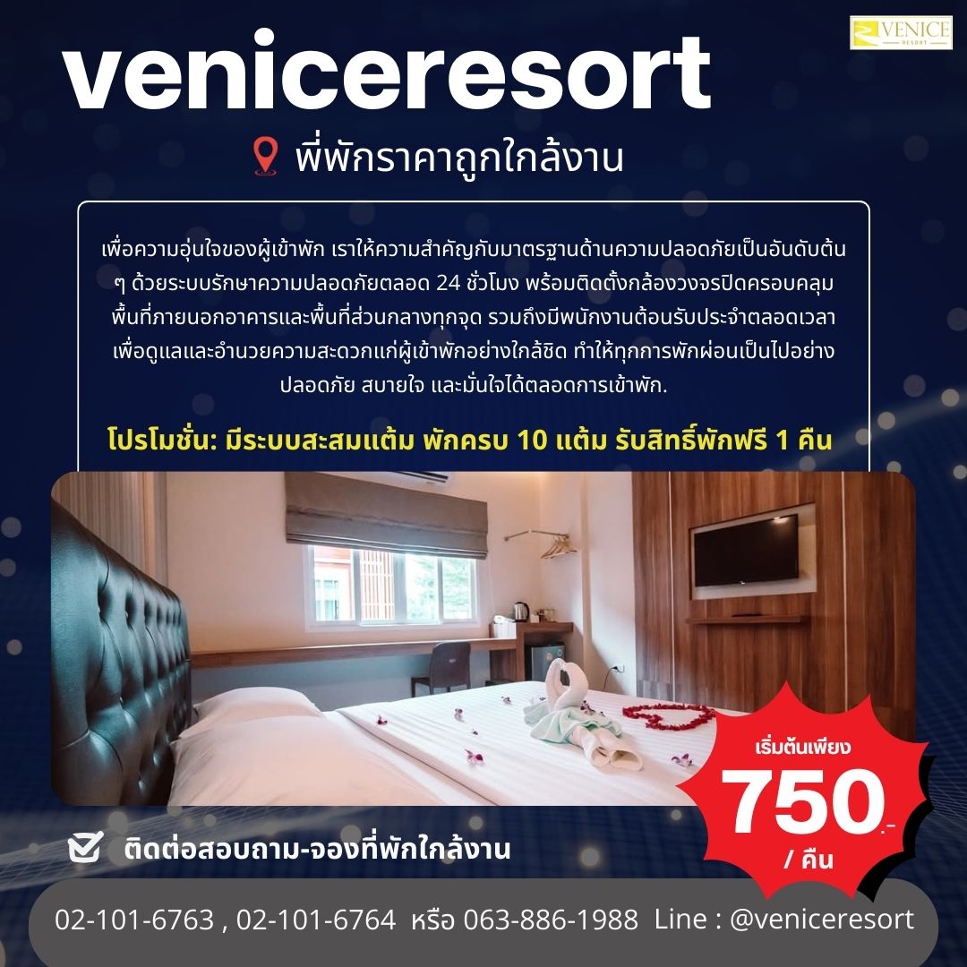 สำหรับคนที่มาเที่ยวงานจากต่างพื้นที่ หรืออยากพักผ่อนแบบสบาย ๆ แนะนำ Venice Resort ที่พักย่านลำลูกกาคลอง 4 ราคาหลักร้อย เดินทางสะดวกไปยัง อำเภอเมืองปทุมธานี เหมาะสำหรับนักท่องเที่ยวที่กำลังมองหา ที่พักใกล้ปทุมธานี หรือ โรงแรมใกล้ปทุมธานี